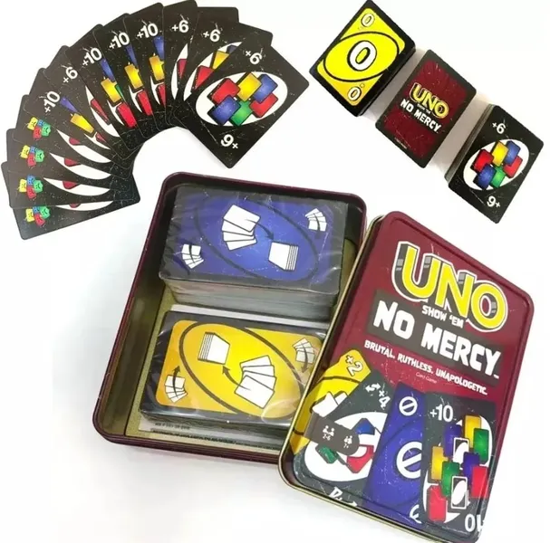 The “No Mercy” variant encourages aggressive play and careful hand management, as players can chain together devastating combinations of cards. While luck of the draw is still a factor, successful players will need to carefully time their plays, manage their resources, and read their opponents to come out victorious. Perfect for both family game nights and competitive gaming groups who enjoy a mix of luck and strategy.